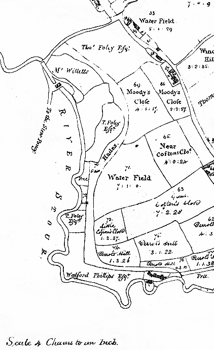 However, the name Hades is perhaps less poetic than the God of the Underworld interpretation. According to local historian Kevin James, the place-names 'Hades' meaning is more prosaic. It comes from the Old English (Anglo-Saxon) word 'hēafod', meaning 'head', which was used for the head-lands at the ends of ploughed furrows. Because of the local topography in this case, the headlands (produced where the plough turned) would have built up roughly parallel to the river (and the ponds of Wollaston Mill), along the line of the later canal. The label 'Hades' is shown on the c. 1760 estate map of Amblecote where part of the canal was subsequently built, The long strip shown on the map seems to have been a century-old remnant of Andrew Yarranton's abortive attempt to make the Stour navigable. His works were destroyed by storms and abandoned after only a few years. The present day width of this particular canal, wider than others, and the abundance of water lilies, may be clues to its previous incarnation.